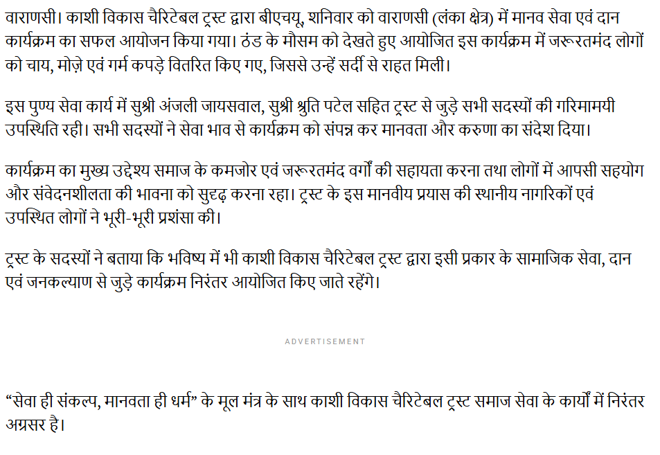 Kashi Vikas Charitable Trust Cause Videos & Press Release